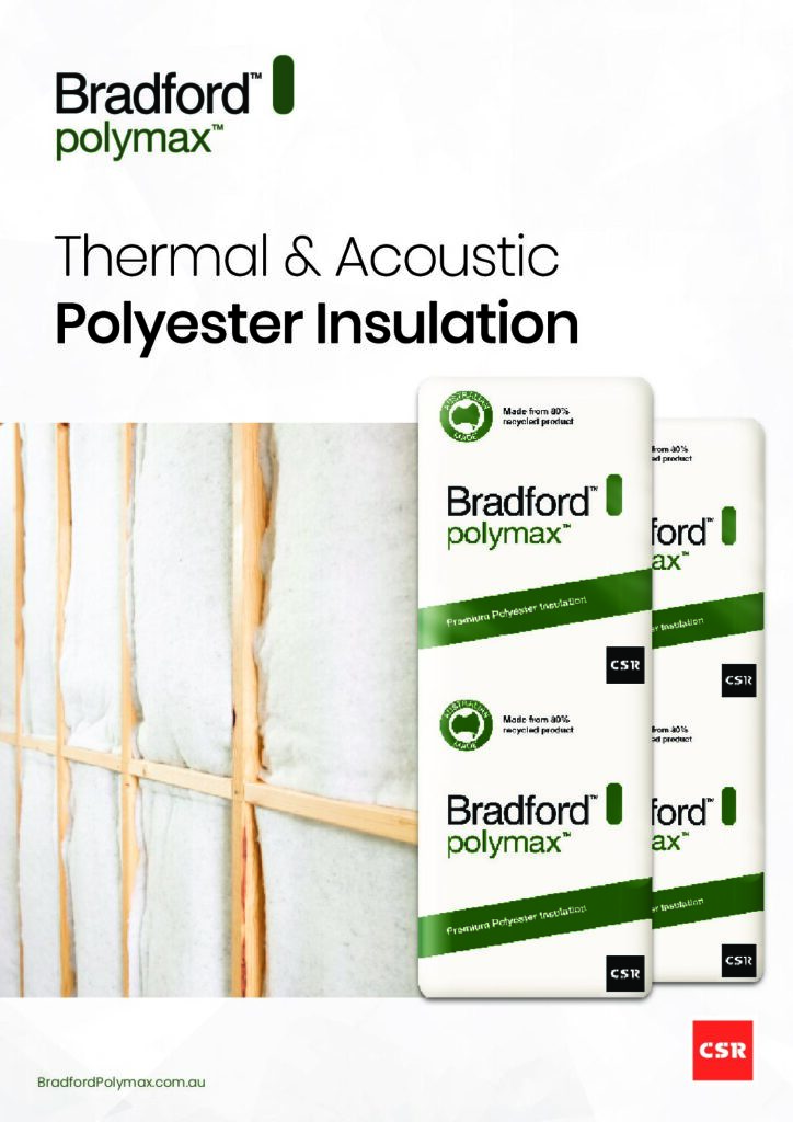 Insulation Batts Polymax Wall Batts Thermal CSR Bradford Bradford Polymax is thermally bonded polyester fibre insulation that complies with AS 4859.1. R-Values quoted below are for the insulation material only. Bradford Polymax thermal wall insulation is designed to maximise comfort and reduce energy bills. These insulation batts are made from 100% polyester. Made from 100% thermally bonded polyester fibres – just like the polyester used in quilts and pillows.